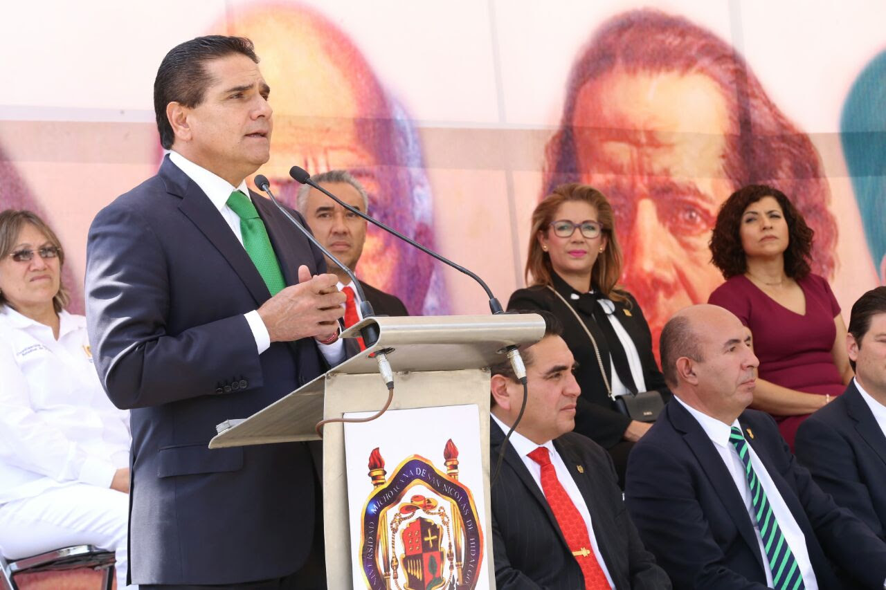 Al inaugurar junto con autoridades universitarias la Plaza Nicolaita de la Cultura y las Artes, enmarcada en el Día de la Bandera Nacional, el titular del Poder Ejecutivo Estatal reiteró su respeto y compromiso hacia la Máxima Casa de Estudios de la entidad.