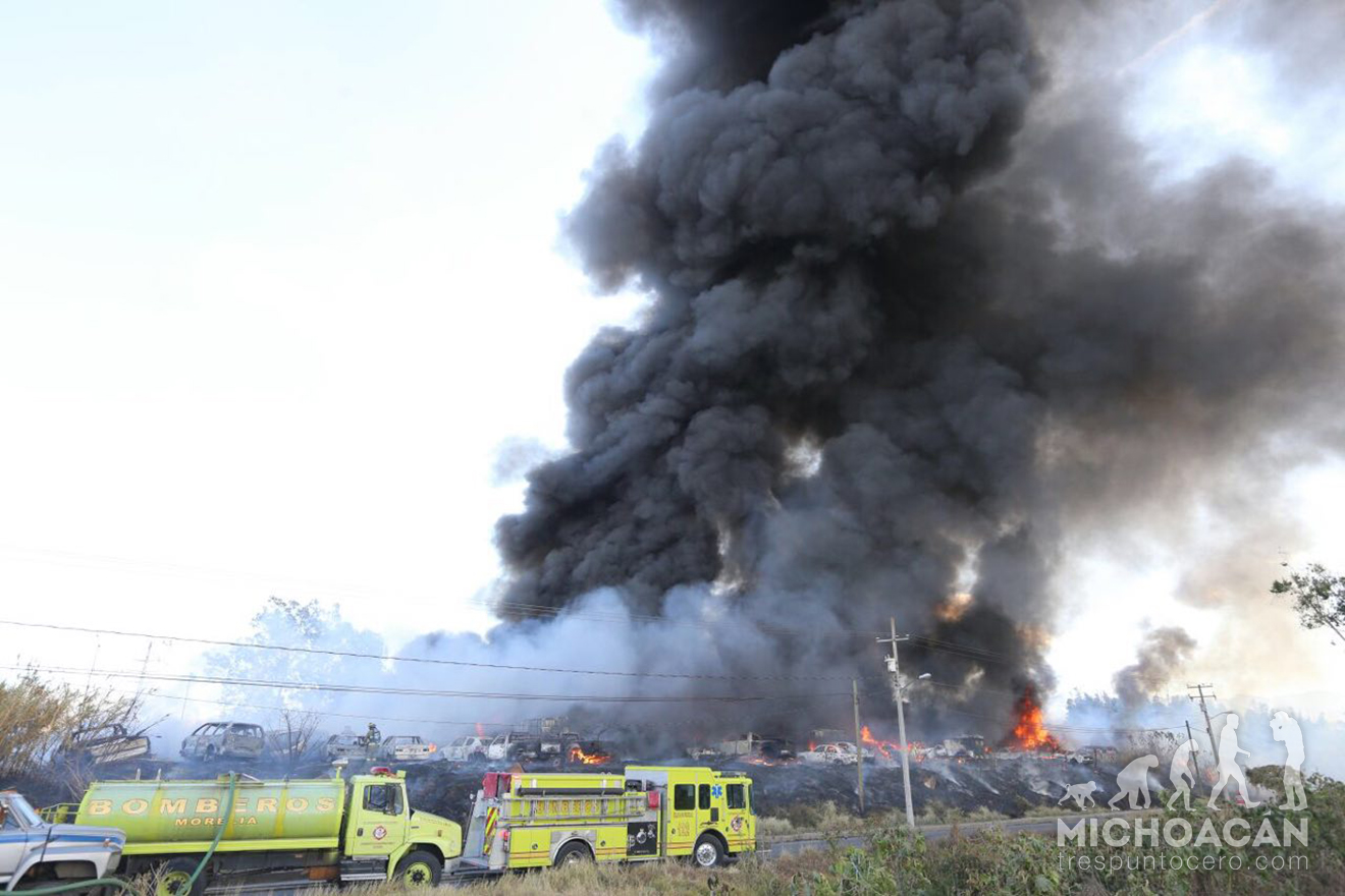 Morelia, Michoacán.-Un total de 240 vehículos quemados fue el saldo del incendio registrado en el corralón estatal de la Secretaría de Seguridad Pública, ubicado en el Libramiento Sur de la capital michoacana.