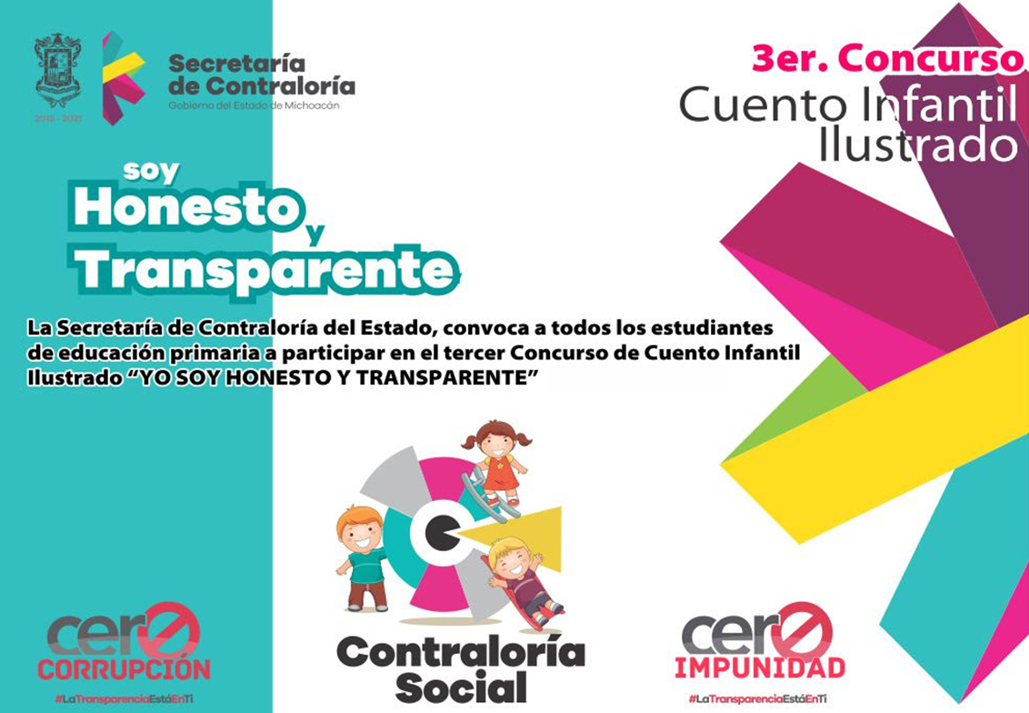 Morelia, Michoacán.- La Secretaría de Contraloría (Secoem) abrió la convocatoria del concurso de cuento infantil ilustrado, cuyo tema será “Soy honesto y transparente”.