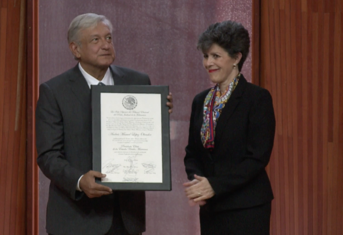 Andrés Manuel López Obrador recibió en el Tribunal Electoral del Poder Judicial de la Federación (TEPJF) la constancia que lo avala como el Presidente Electo de los Estados Unidos mexicanos, cargo que desempeñará del 1 de diciembre de 2018 al 30 de noviembre de 2024.