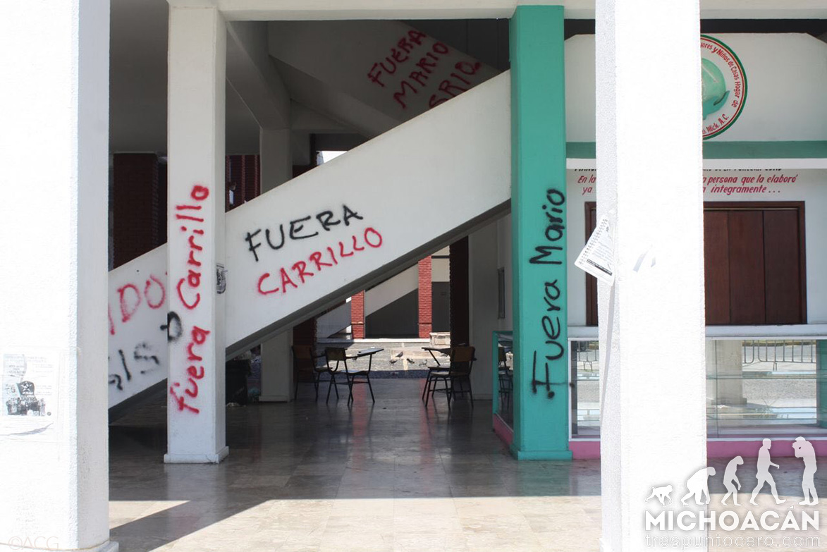 Morelia, Michoacán.-Las autoridades del municipio de Lázaro Cárdenas analizan interponer una denuncia penal en contra de los maestros de la Coordinadora Nacional de Trabajadores de la Educación (CNTE) luego de que esta tarde pintarán con aerosol el Palacio Municipal.