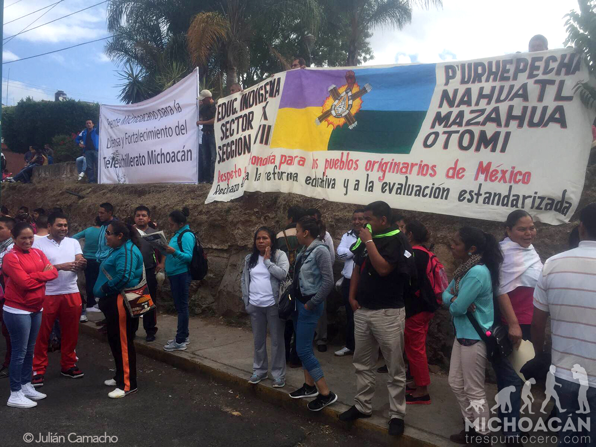 Morelia, Michoacán.-Maestros adheridos al Sector IX indígena de la Coordinadora Nacional de Trabajadores de la Educación (CNTE) iniciaron la marcha rumbo al Centro Histórico en contra de  la Reforma Educativa y la Evaluación estandarizada.