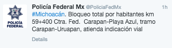 El pasado 16 de marzo fueron detenidos los tres comuneros por supuestamente portar armas de fuego de uso exclusivo del Ejército, por lo que los habitantes de la zona bloquearon la carretera Carapan-Uruapan y retuvieron 16 unidades entre particulares, comerciales e institucionales.