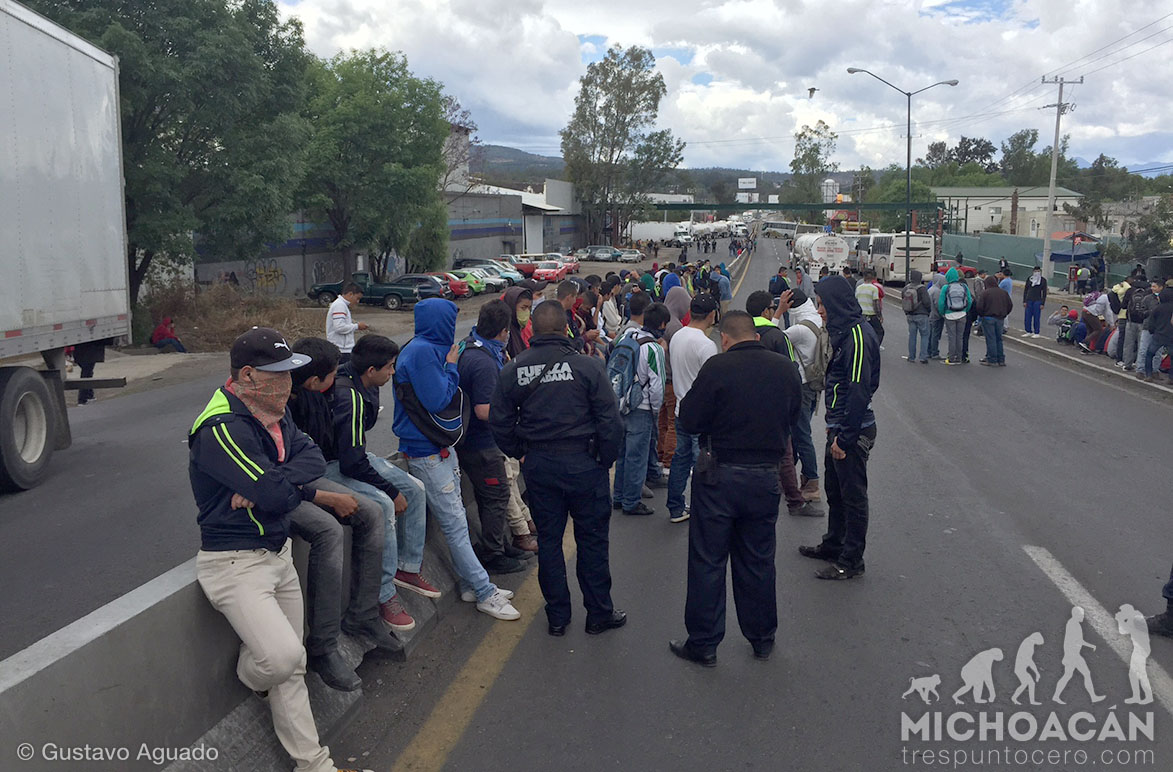 Bloquean más de 300 normalistas la salida a Pátzcuaro