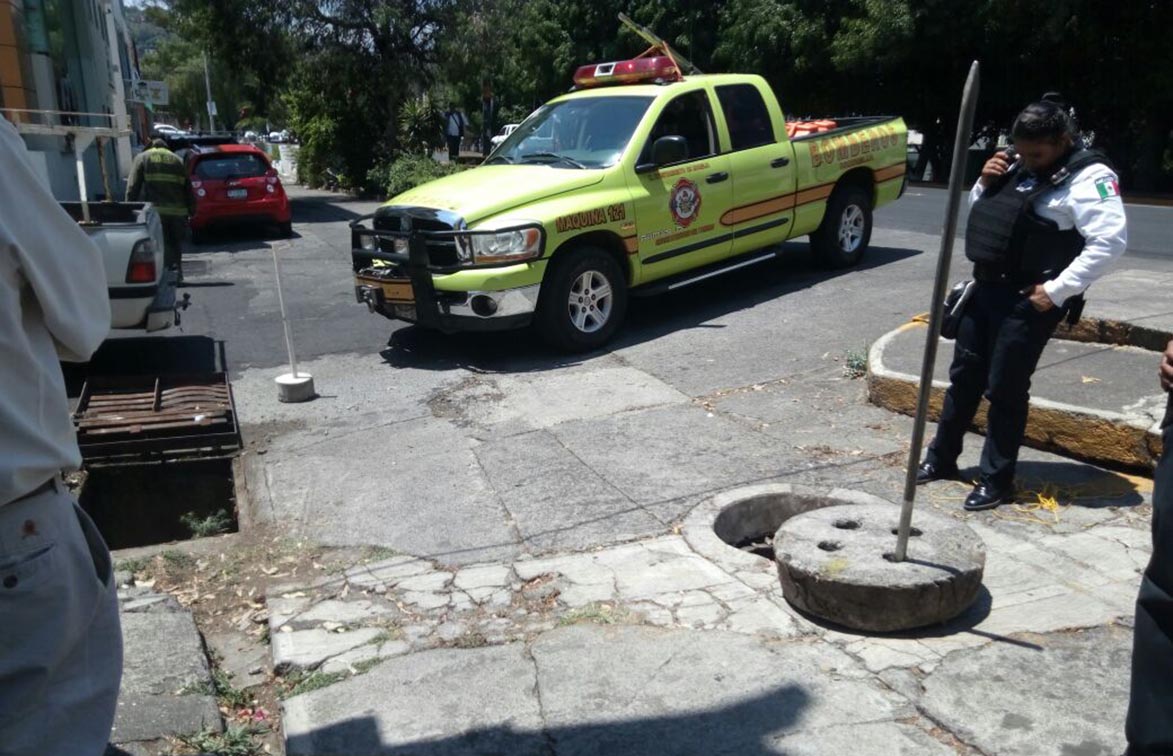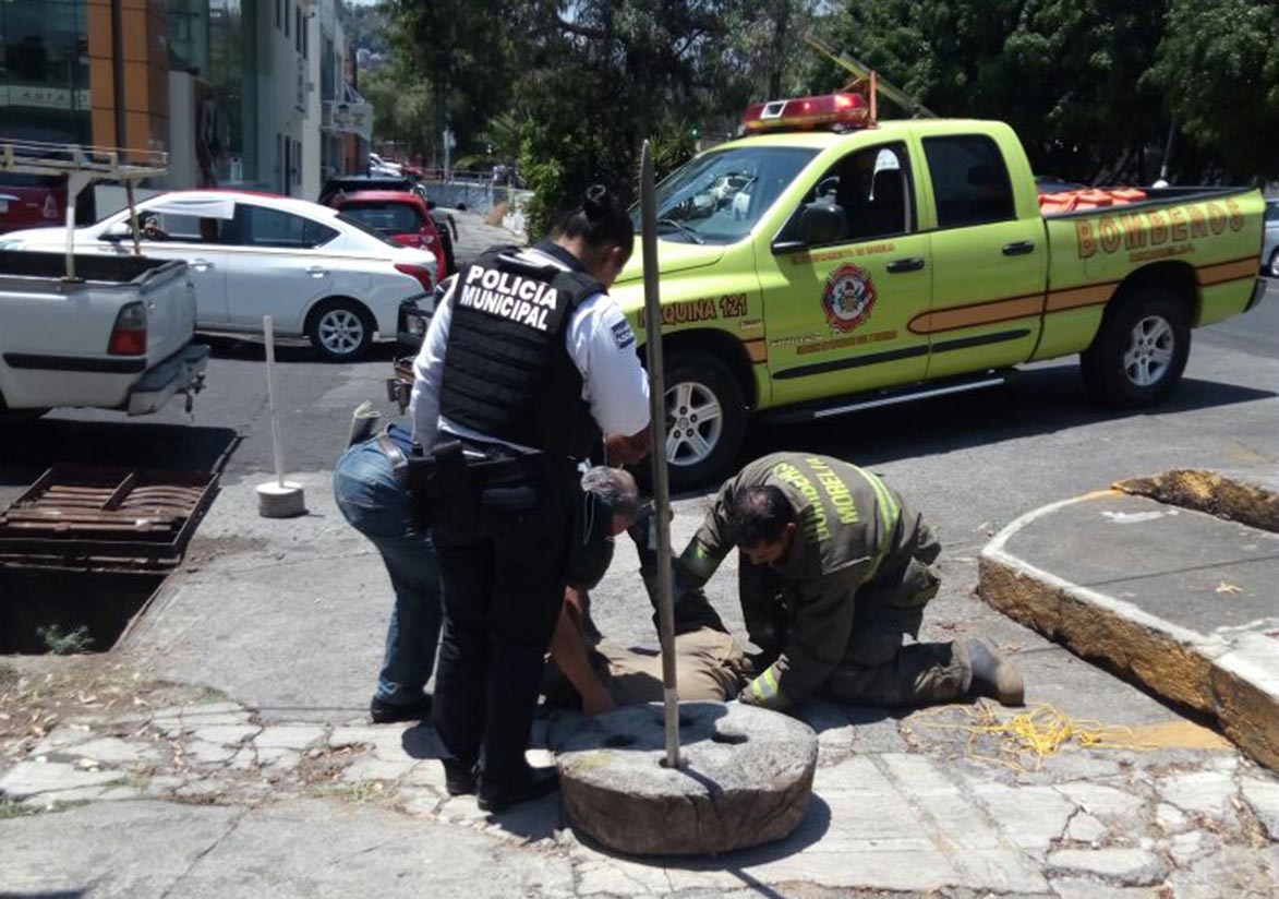 Bomberos de Morelia emprenden rescate de un gato atrapado en alcantarilla
