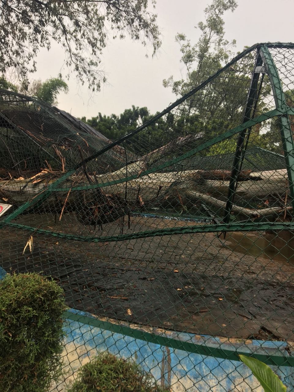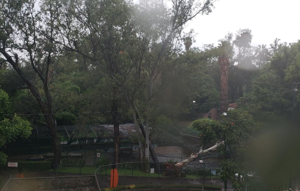 Los fuertes vientos que acompañaron la tromba que azotó la tarde de este miércoles la capital michoacana provocaron la caída de un árbol sobre la jaula de los tigres, lo que provocó el colapso de la misma.