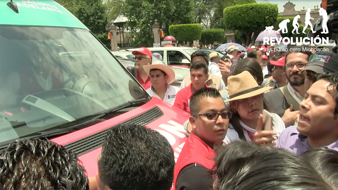 Pero el candidato del PRI se mantenía firme, “que quitaran a la prensa”. Nicolás, el encargado de protocolo, así como Azucena Silva, responsable de la comunicación social del candidato, exigía a los reporteros que se quitaran del frente de la camioneta para que no sufrieran un accidente si el vehículo arrancaba.