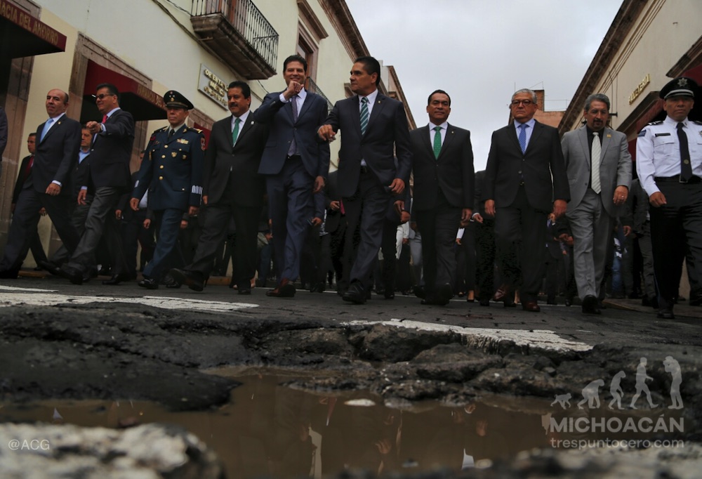 Morelia, Michoacán. La colocación del Bando Solemne de las fiestas patrias septembrinas, fue motivo suficiente para que el gobierno estatal y el Ayuntamiento de Morelia decidieran cerrar la avenida Madero desde el Instituto Mexicano del Seguro Social hasta Villalongín, con severas complicaciones para peatones y transportistas que tuvieron que desviarse para llegar a sus trabajos o escuelas.