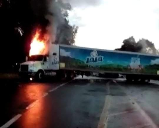 Horas más tarde, de nueva cuenta incineraron otro vehículo color balnco; finalmente, por la tarde – noche los comuneros prendieron fuego al tráiler repartidor de productos lácteos con el que cerraron la circulación.