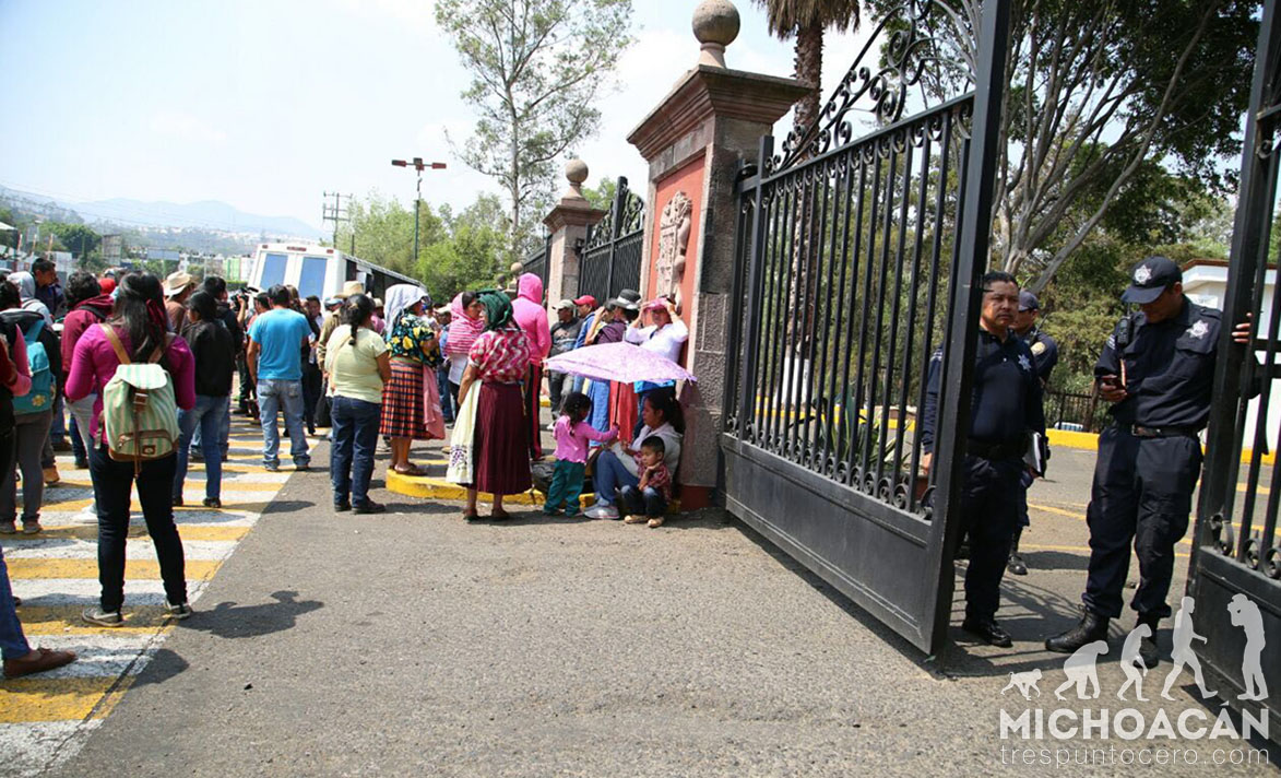 Alrededor de un centenar de habitantes, entre niños, mujeres y jóvenes, se encuentran frente al inmueble en espera de recibir atención a sus demandas.