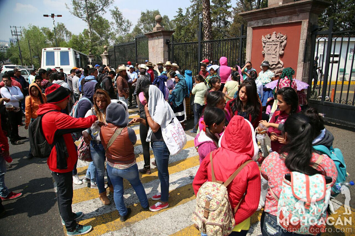 Morelia, Michoacán.-Indígenas de Arantepacua y Comachuén se manifiestan en Casa de Gobierno en demanda de que el gobernador Silvano Aureoles Conejo cumpla con las promesas que les hizo  en campaña.