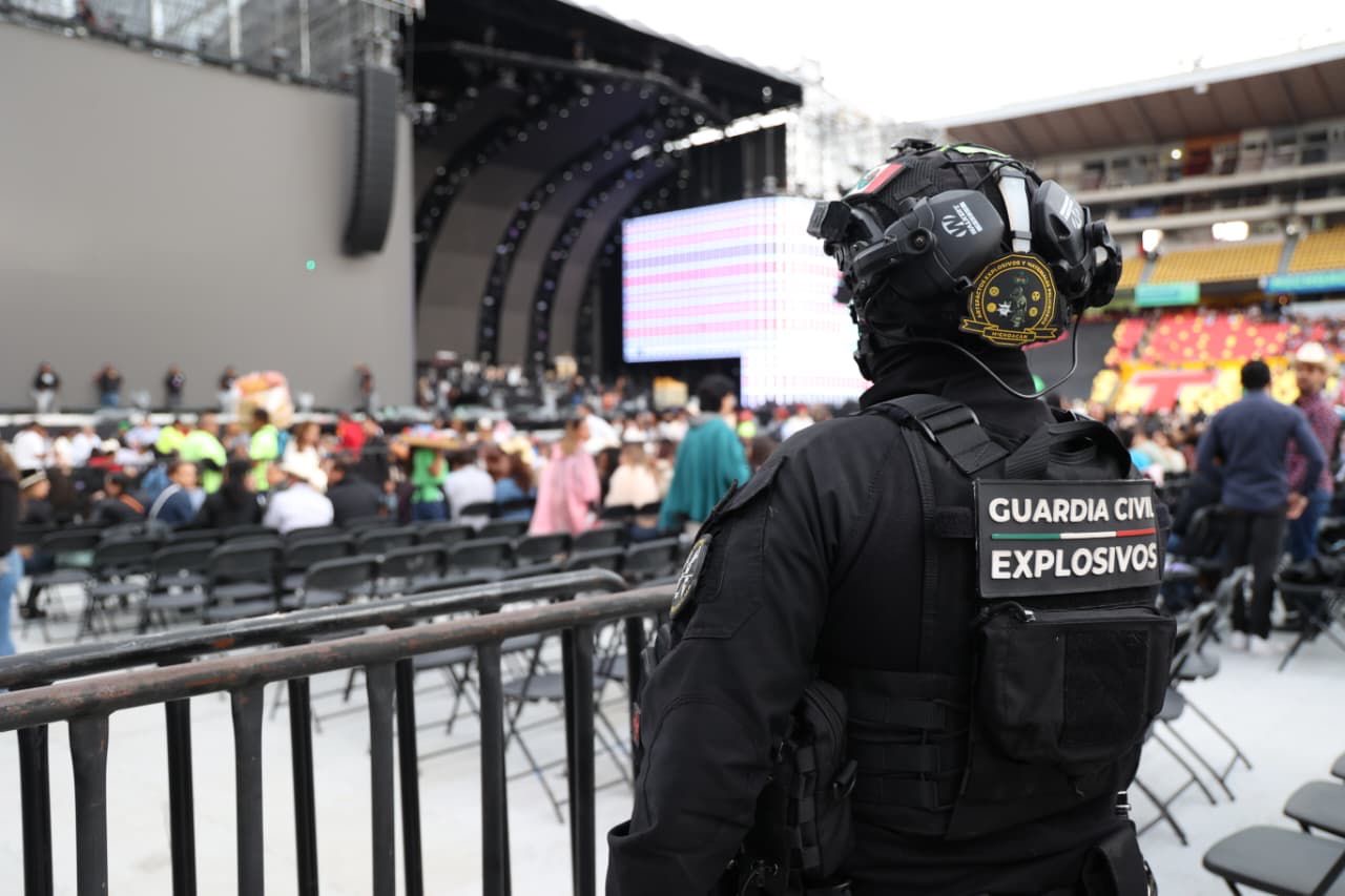 Gracias a la coordinación entre el Gobierno del Estado, Defensa, Guardia Nacional, Fiscalía General del Estado y la Guardia Civil, en todo momento se procuró la tranquilidad durante el transcurso del concierto, además el titular de la SSP, Juan Carlos Oseguera Cortés realizó recorridos a pie para verificar que el orden se mantuviera y así garantizar la seguridad de los asistentes.
