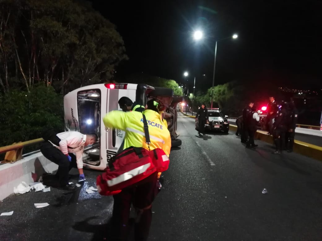 A las 2:00 am, se recibió un tercer reporte correspondiente al mismo conductor, en el que se solicitaba una ambulancia debido a que la combi había sufrido un accidente vial luego de que el chofer brincó el camellón de el puente elevado de Tres Puentes y colisionó contra otro vehículo.