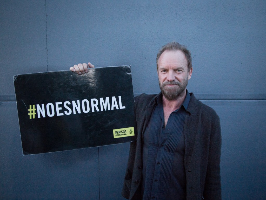 El reconocido bajista de The Police, Sting levantó la voz en apoyo a la campaña de Amnistía Internacional contra las desapariciones en México que han llegado a niveles epidémicos indica el músico británico.