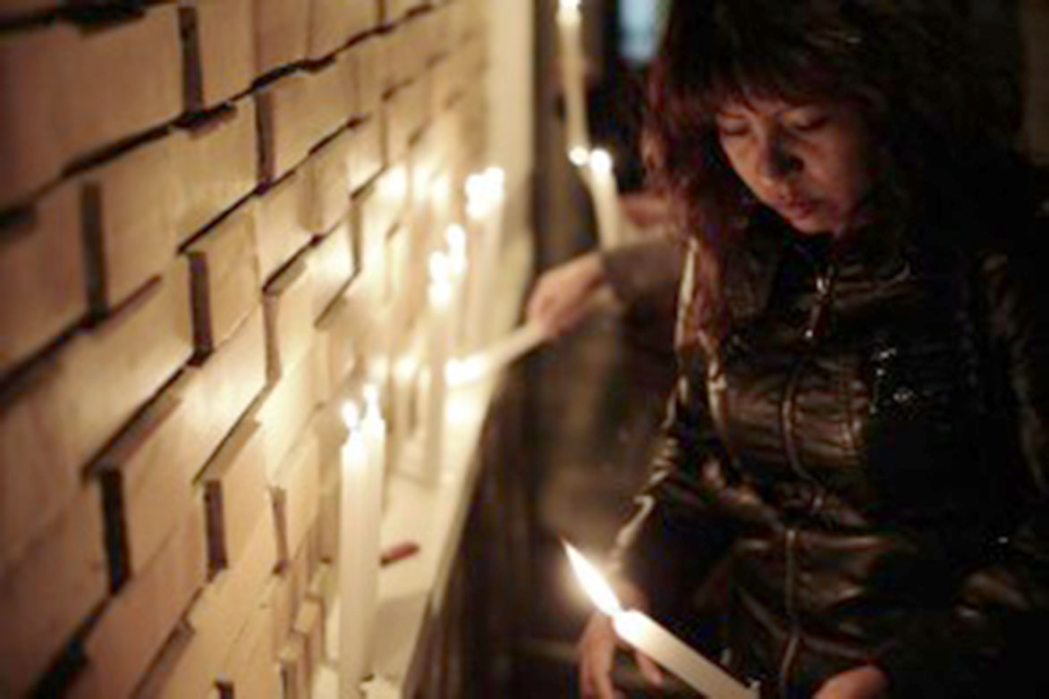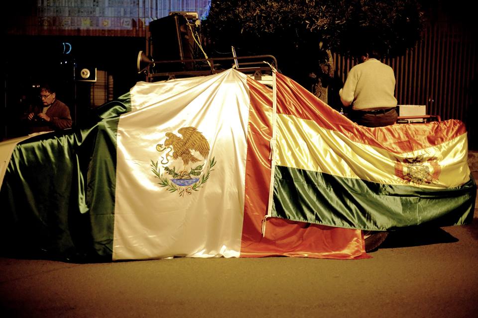 Con velas en las manos, jóvenes de la Normal Simón Bolívar de La Paz, de Generación Evo e integrantes de la Asociación de Familiares de Detenidos, Desaparecidos y Mártires por la Liberación Nacional de Bolivia, realizaron una manifestación en la representación del gobierno mexicano en La Paz, la noche del 22 de octubre.