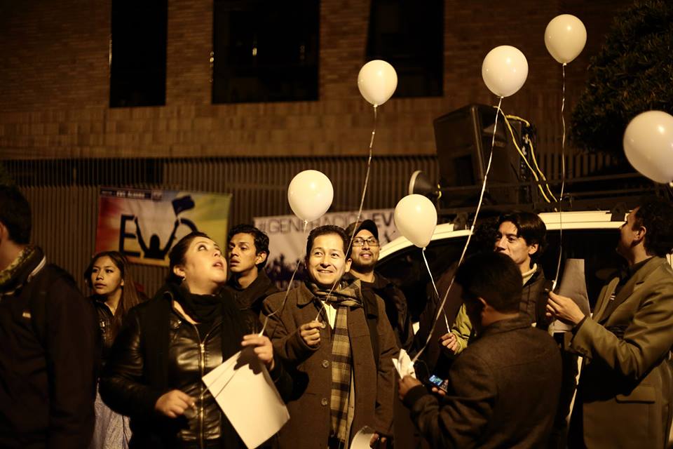 43 globos blancos se soltaron en el cielo paceño y la embajada fue rodeada de velas, carteles y gritos que se unen a la exigencia: