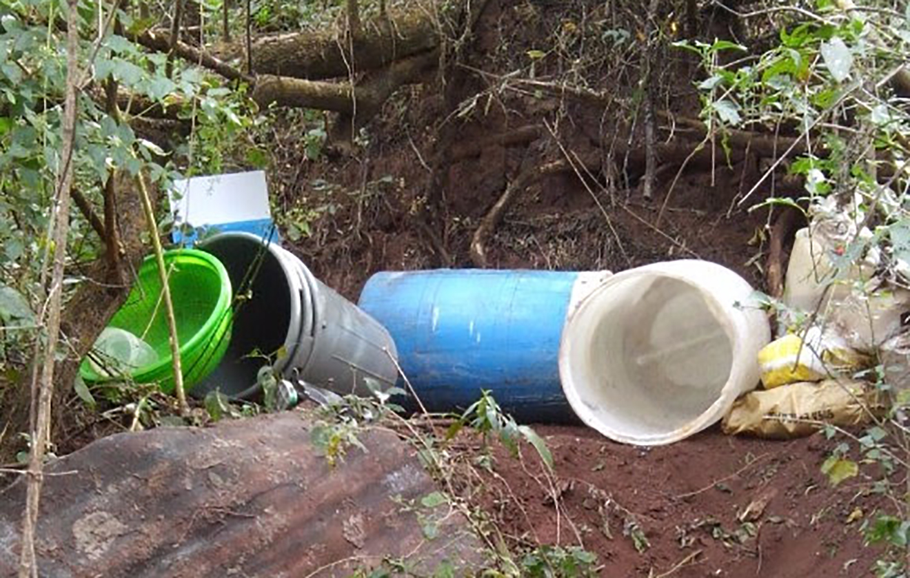 En el lugar se aseguraron 3 bidones de 50 litros, con líquido transparente; 7 bidones con acetato de sodio, 5 tambos de color azul, 6 tambos metálicos sellados con líquido en su interior, 27 Costales de Sosa Cáustica, 2 reactores donde se procesa droga, 1 tanque de gas, 1 báscula gramera y 1 máscara antigas.