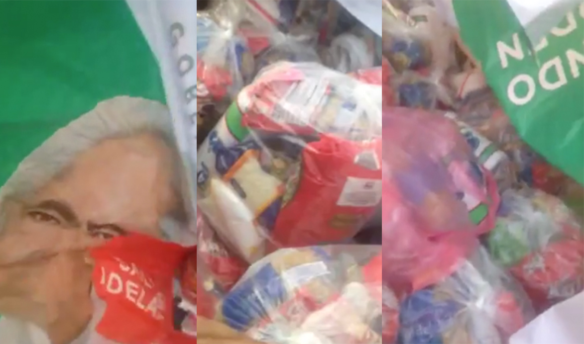 Según se aprecia en la grabación, las despensas iban cubiertas con una lona del abanderado priista, Ascensión Orihuela Barcenas, aunque la mujer niega en todo momento que estas acciones sean ilegales y que esté a favor de algún partido político.