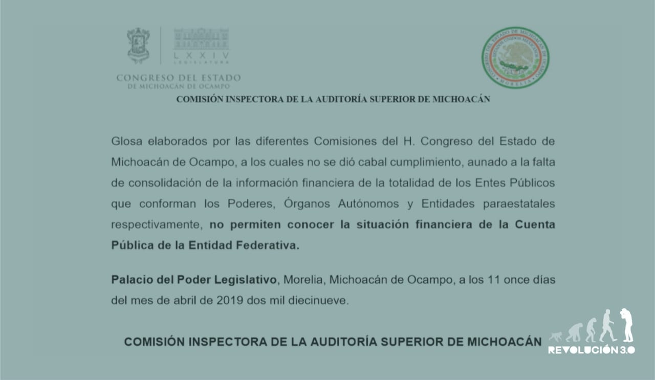 Tal y como ocurrió con la fiscalización de las cuentas municipales, la Auditoría Superior de Michoacán (ASM) incumplió de manera plena con la normativa en el proceso de fiscalización de la Cuenta Pública Estatal, según se evidencia en el análisis efectuado por la Comisión Inspectora del Congreso al informe del órgano fiscalizador.