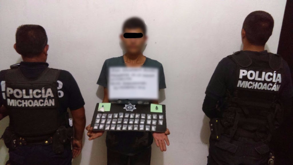 Mientras que en Sahuayo, los elementos policiales le decomisaron a Jesús N., de 18 años de edad, 35 dosis y dos envoltorios de plástico con sustancia granulada con las características de la droga conocida como Cristal.