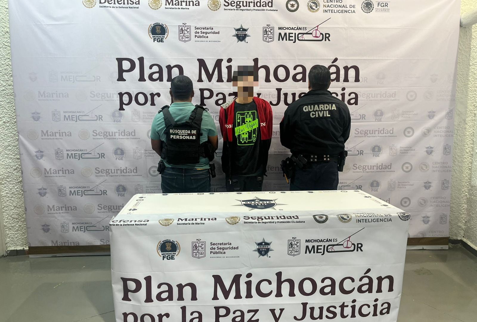La Guardia Civil a través del Agrupamiento Especializado en Búsqueda de Personas Desaparecidas realizó la detención de un hombre de 28 años, durante operativos enmarcados en el Plan Michoacán por la Paz y la Justicia.