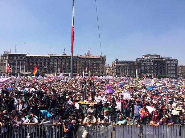 Ante miles de personas se pronunció en contra de Enrique Peña Nieto y su forma de gobierno que mantiene al país en una crisis de desarrollo económico y  plagada de inseguridad. “Hay días de tristeza, dolor y una profunda crisis nacional con una monstruosa desigualdad. Por cada multimillonario, un millón de pobres”, dijo.