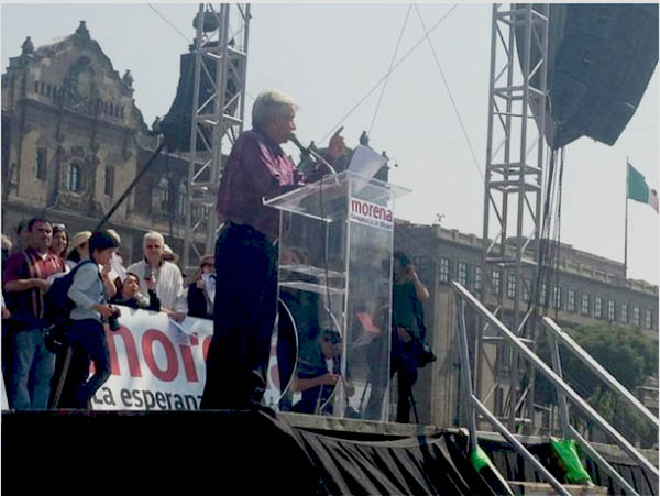 “Hoy como siempre nos ocupamos de asuntos importantes para la vida pública de México pero en esta ocasión lo hacemos en momentos aciagos de tristeza y de dolor. Lo estamos haciendo ahora cuando se está manifestando con mayor dureza la grave y profunda crisis de México”, expresó Andrés Manuel López Obrador, líder del Movimiento Regeneración Nacional (Morena) durante el mitin que realizó en la plancha del Zócalo capitalino.