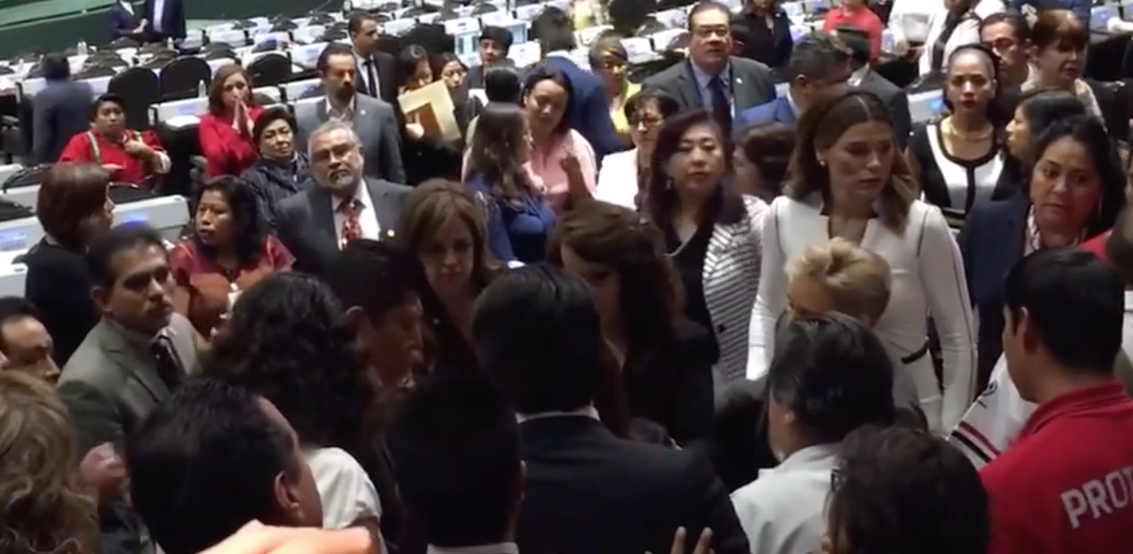 La legisladora fue apoyada por el resto de sus compañeros y el presidente de la Mesa Directiva, Porfirio Muñoz Ledo, decidió suspender la sesión de este jueves.