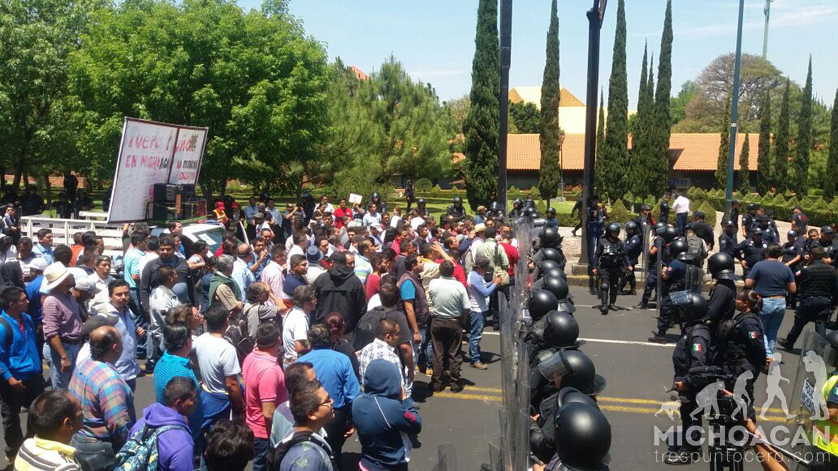 En el marco de la visita a Morelia del titular de la Secretaría de Educación Pública, Aurelio Nuño, los mentores junto con normalistas se manifestaron en el Centro de Convenciones de donde fueron desalojados por elementos de seguridad.