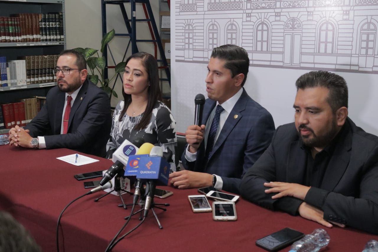 En rueda de prensa estuvieron presente Javier Paredes Andrade, Miriam Tinoco Soto, Erik Juárez Blanquet y Humberto González Villagómez, en tanto que Wilma Zavala arribó una vez que ésta había concluido.