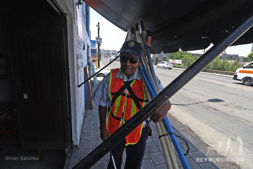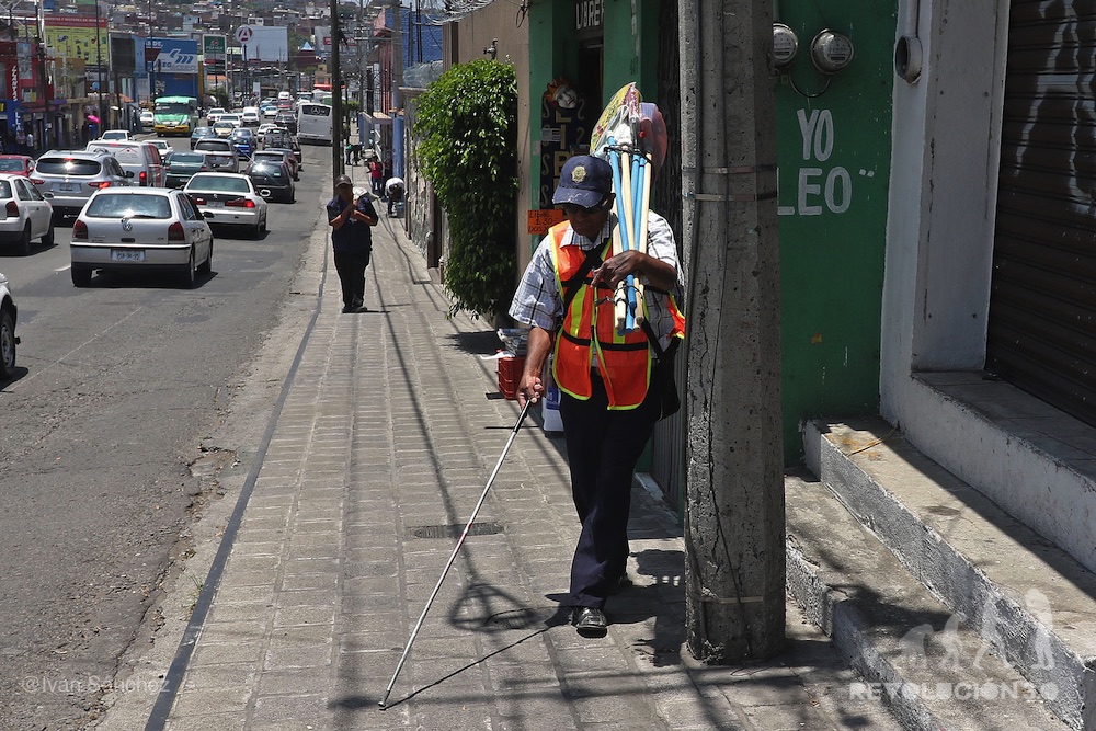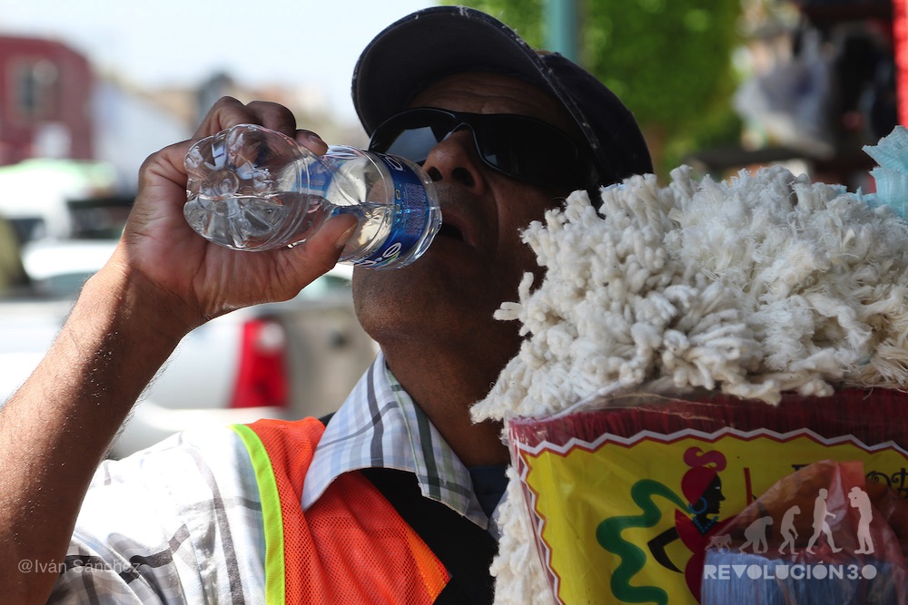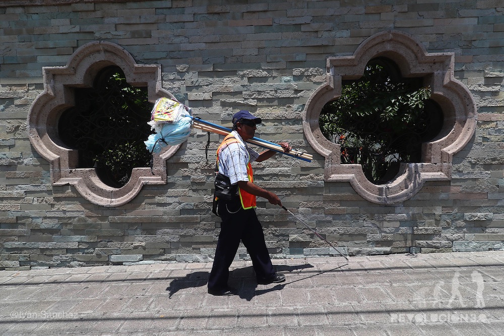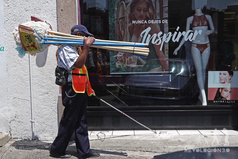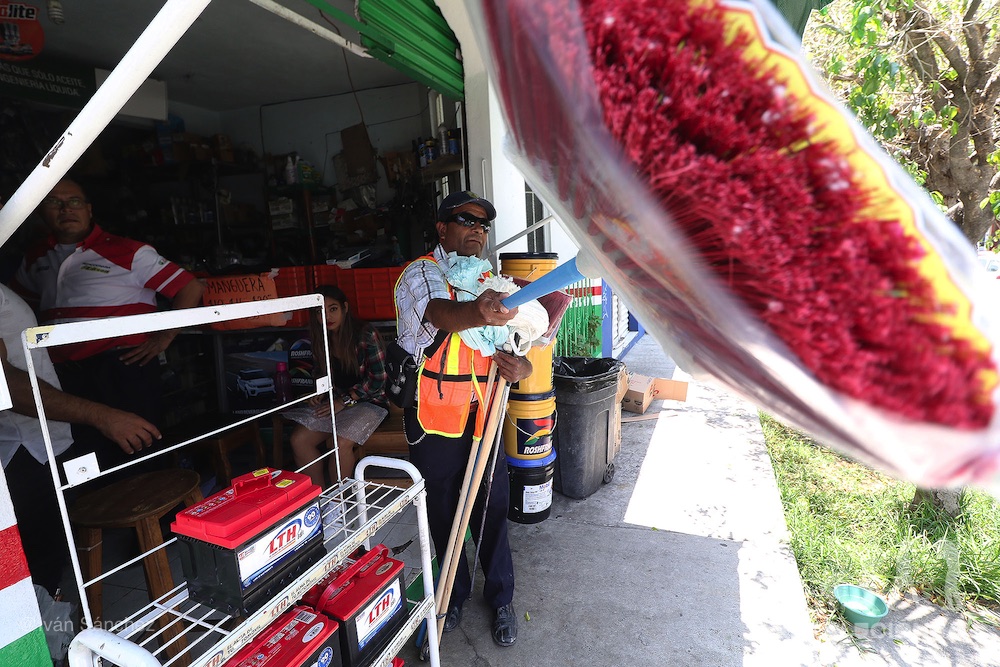 Aunque le resulta cansado caminar bajo el sol con 20 piezas, Miguel no tiene otra opción para ganarse la vida, alegre señala que donde más le compran escobas y traperos es sobre la Avenida Morelos Norte. Este día vendió al menos siete traperos y dos escobas.