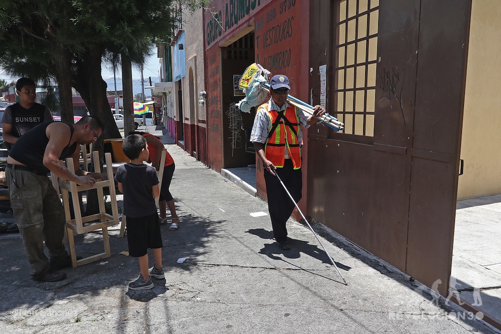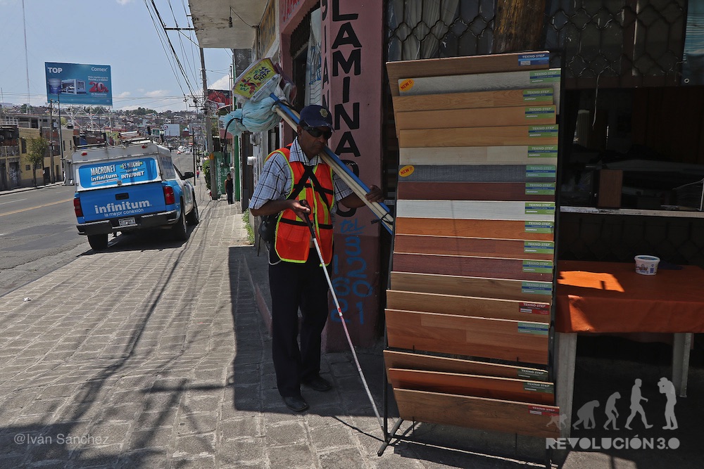 “Fue en la esquina de la Nocupétaro y la Michoacán (ríe), iba caminando y como vendí tres trapeadores, lo que nunca, iba bien a gusto, pero no tomé la experiencia de esas que ya me habían pasado, levanté el bastón caminando para tentar la puerta, ¡no! de pronto ya sentía que volaba en los aires, era un pozo más o menos así (abre sus brazos indicando el ancho) y de dos metros pa’bajo”.