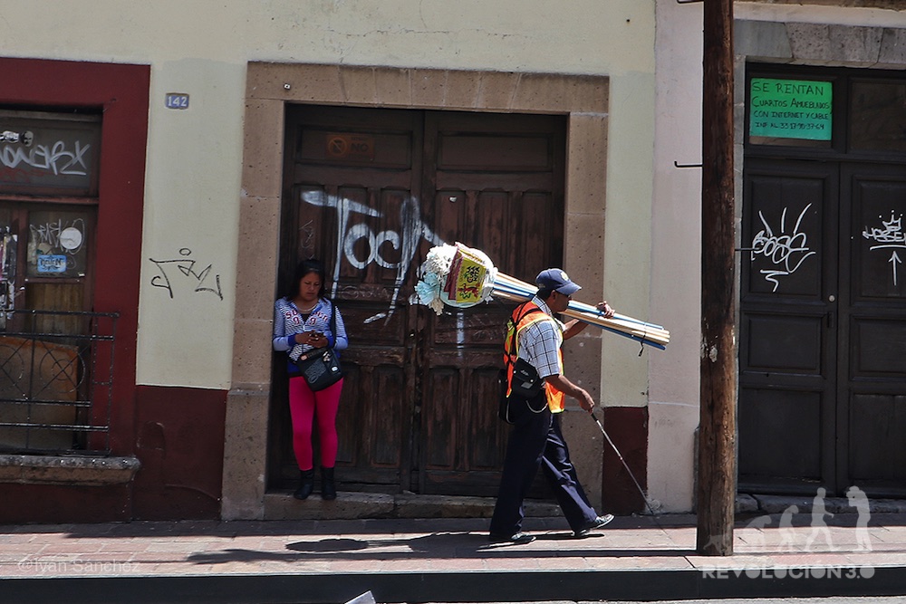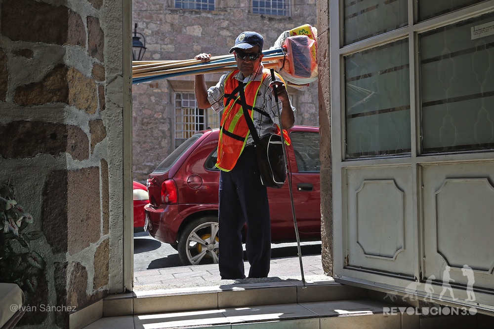 Oriundo de la comunidad del Arúmbaro, municipio de Charo, adelante del kilómetro 23 por La Escalera, vive solo en La Charca, colonia Loma Larga, en Morelia. Lleva 10 años vendiendo escobas y traperos de puerta en puerta por las colonias céntricas de la capital michoacana.