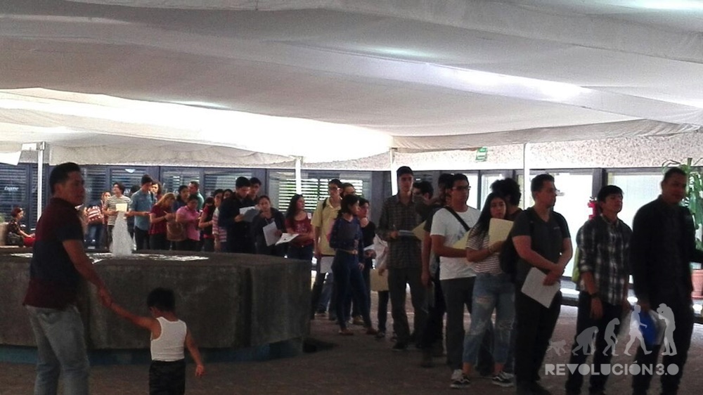 Alrededor de 600 jóvenes se formaron cerca de las 14:00 horas para ingresar al Salón Principal del Centro de Convenciones y Exposiciones en esta capital, para someterse al examen general de conocimientos a iniciar a las 15:00 horas, para el cual se preveía una duración de dos horas.