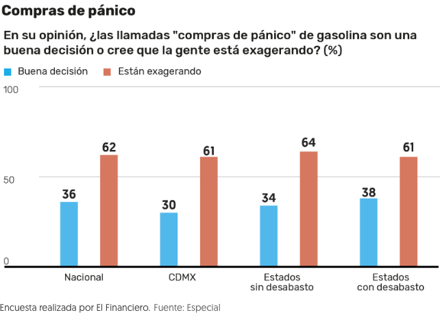 La encuesta realizada el 10 y 11 de enero de 2019 indica que el 62 por ciento de los ciudadanos considera que hay compras pánico exageradas, 61 por ciento de los que viven en las entidades con problemas de abasto opina lo mismo.