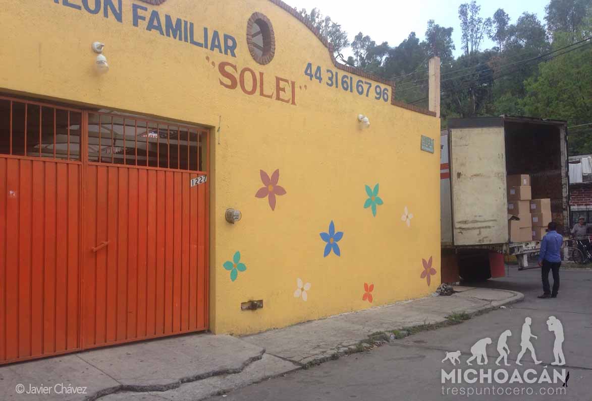 El salón que es utilizado como bodega se encuentra sobre la calle Profesor Jesús Romero Flores, en un salón de fiestas de nombre Solei, casi en las esquina con la calle Polonia, justo a espaldas de la Casa de Gobierno.