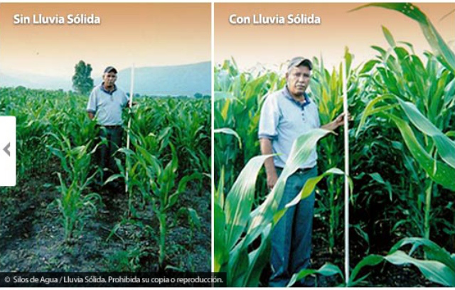Rico Velasco recuerda que acudió a la Secretaría de Agricultura, Ganadería, Desarrollo Rural Pesca y Alimentación (Sagarpa), a la Comisión Nacional del Agua (Conagua) y la Procuraduría Federal de Protección al Ambiente (Profepa) para presentar la “lluvia sólida” y los beneficios de su uso en los cultivos, pues en promedio se gasta el 80 por ciento del agua nacional con fines agrícolas; sin embargo, sólo “le desearon suerte”.