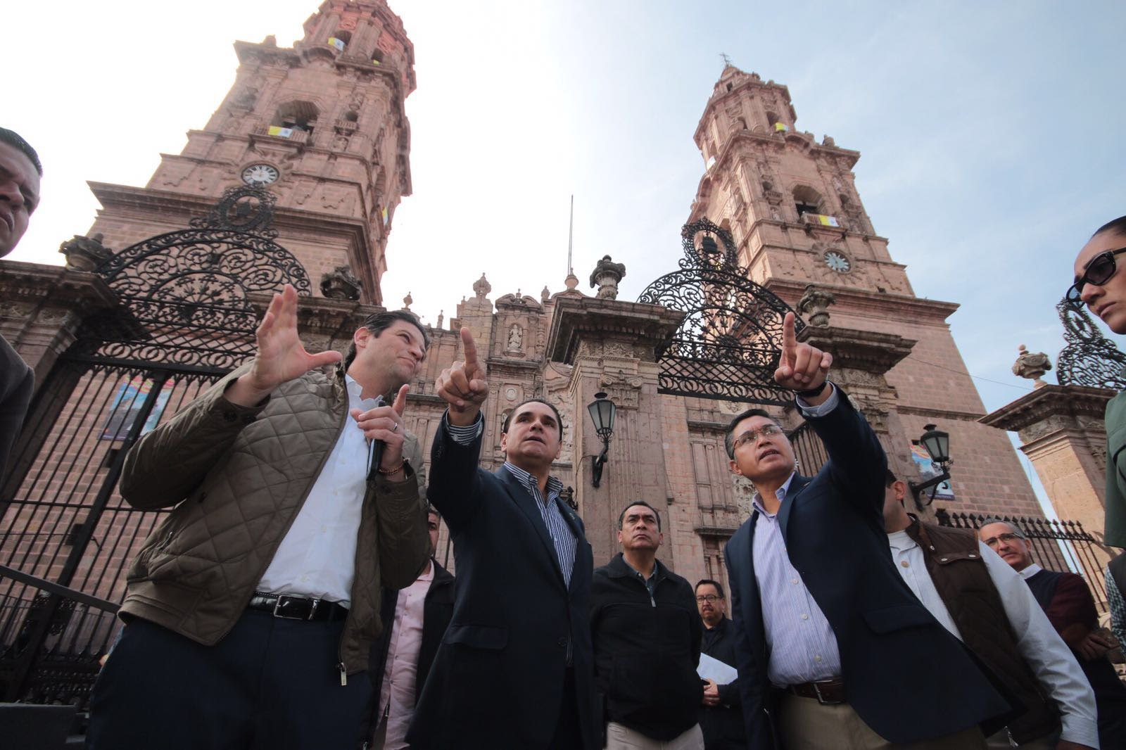 El Gobernador, el Presidente Municipal y demás integrantes, acudieron a la Catedral de Morelia en donde también supervisaron la logística para recibir al Jerarca Católico en esta histórica visita.