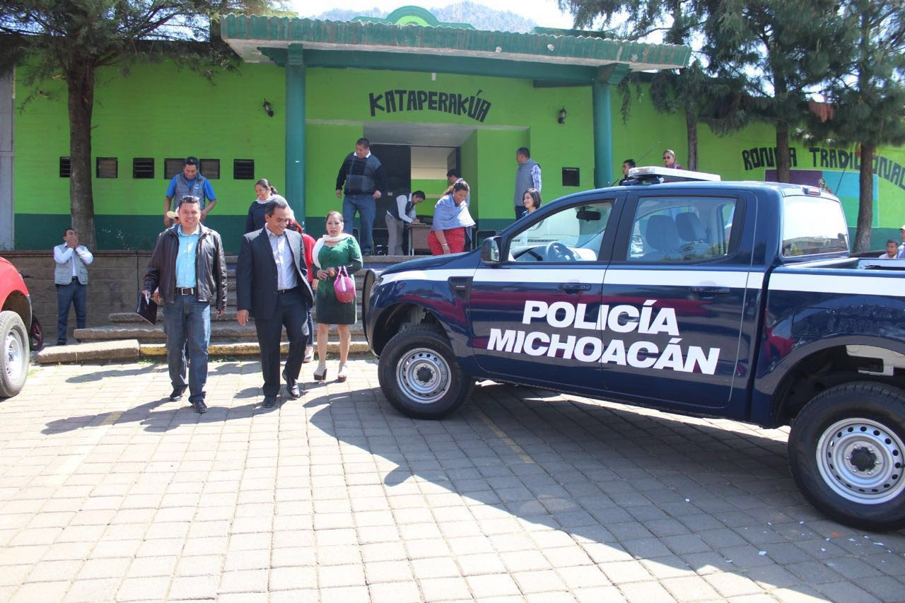 En las instalaciones de la Ronda Comunitaria de la localidad, lugar conocido como “Kataperakúa”, el secretario de Gobierno entregó la unidad marcada con el número 00-001 y las características correspondientes de la Policía Michoacán.