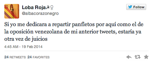 En otro mensaje, la joven dijo “Lo alto que voló Carrero no es nada en comparación a cómo va a acabar Rajoy en cuanto estalle la Revolución”. Además, la muchacha fue criticada por indicar: “Que vuelvan los Grapo… Necesitamos una limpieza de fachas urgente”.