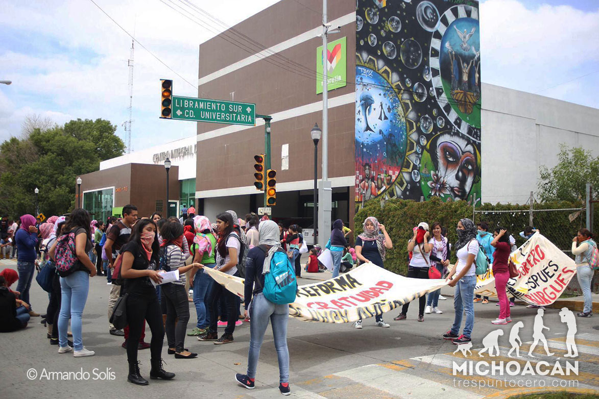 Los estudiantes marcharon y bloquearon distintas avenidas de la ciudad, mientras que retuvieron vehículos particulares en distintos puntos, mismos que más tarde fueron liberados.