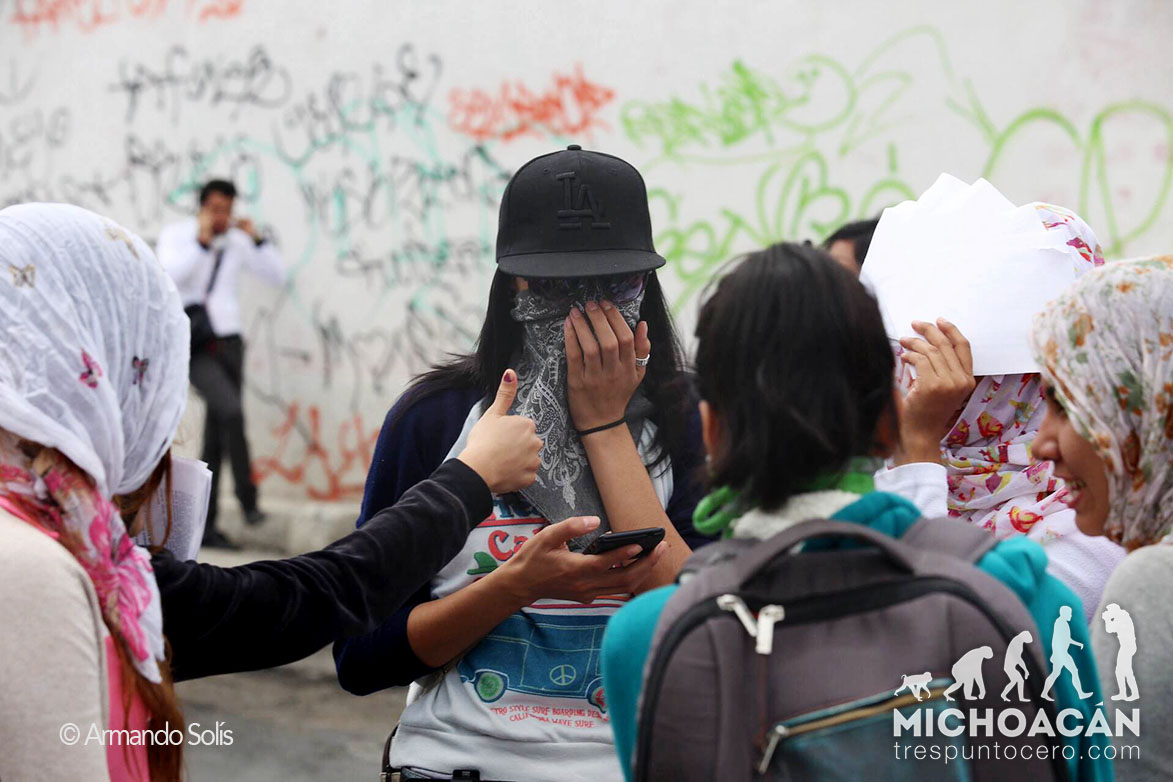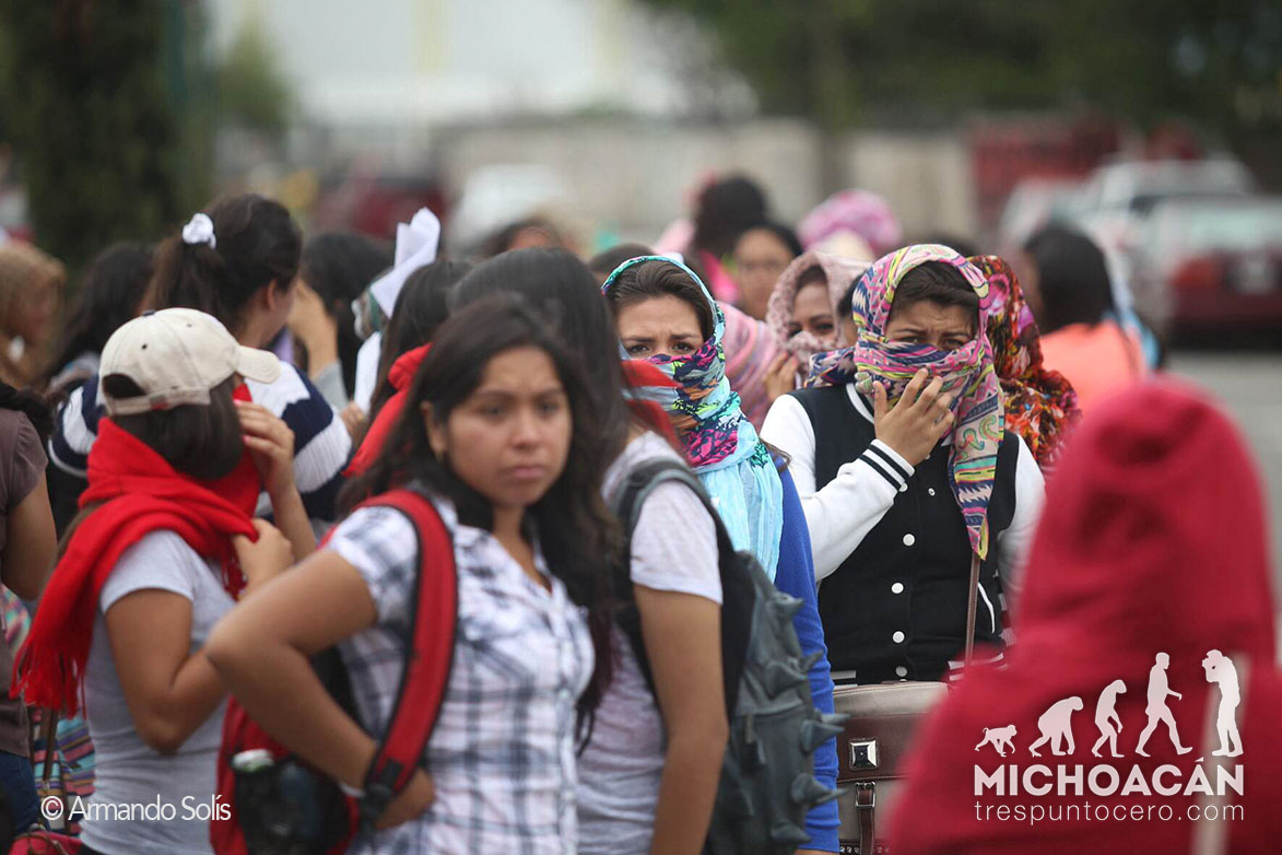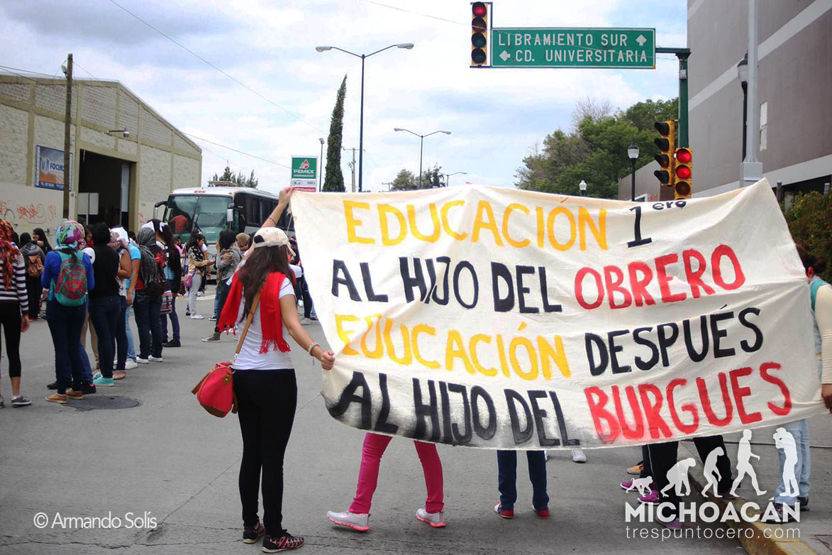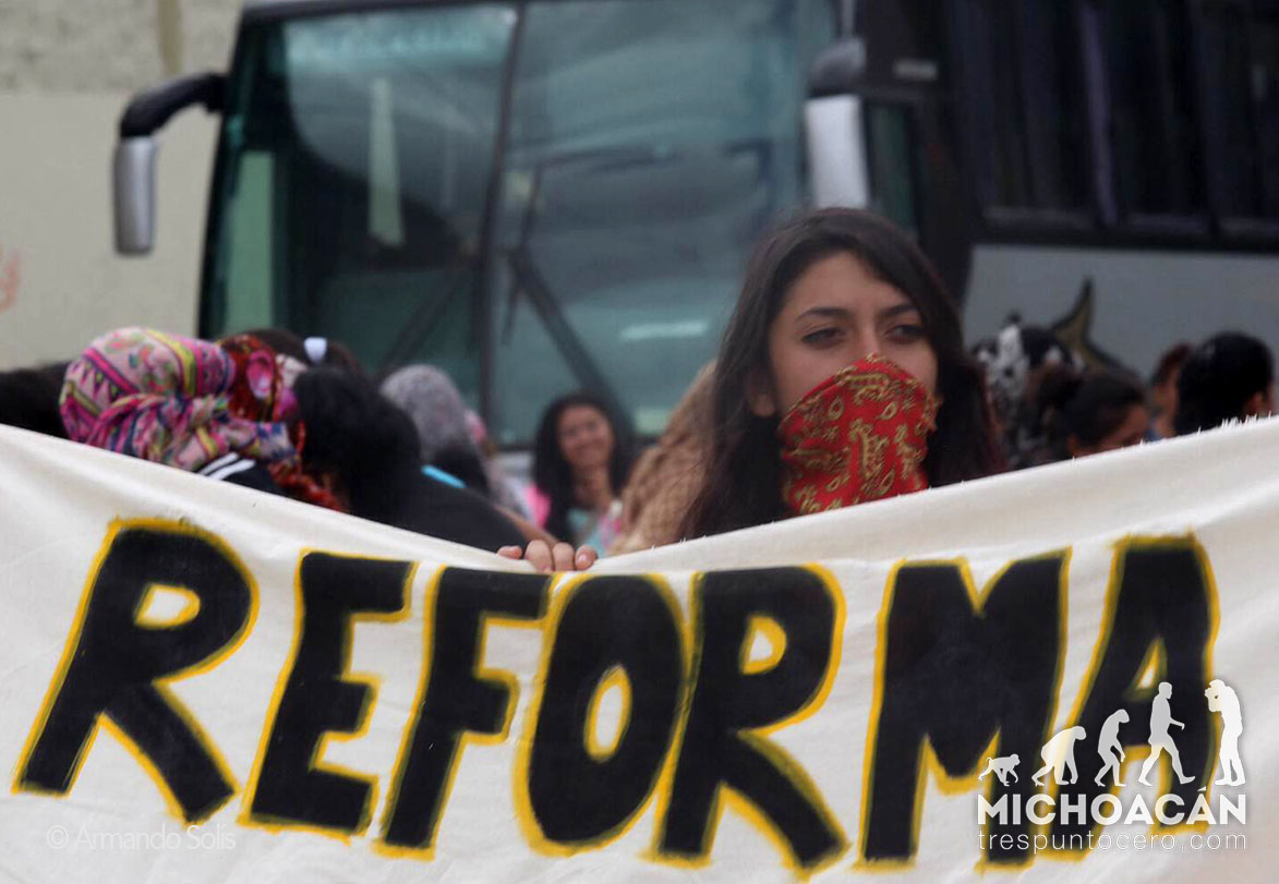 Morelia, Michoacán.- Estudiantes de la Escuela Normal de Educadoras (ENE), así como de la Escuela Normal Rural de Tiripetío marcharon este lunes de nueva cuenta para exigir la destitución del director de la Escuela Normal Superior del Estado de Michoacán Fernando Vázquez García.