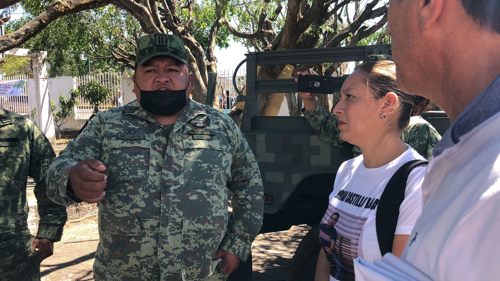 En ese punto, donde la Secretaría de la Defensa Nacional (Sedena) cuenta con una base, los manifestantes pidieron a uno de los mandos la intervención del Ejército en las labores de búsqueda de Rayan y Luis Fernando.