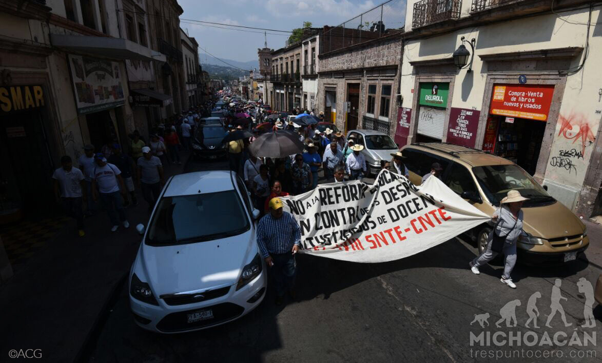 Morelia, Michoacán.-Como parte de las acciones para exigir la derogación de la Reforma Educativa, además de exigir un alto a la represión de la protesta social de la que han sido víctimas en las últimas semanas, nuevamente integrantes de la Coordinadora Nacional de Trabajadores de la Educación (CNTE) realizaron una marcha en la capital michoacana.
