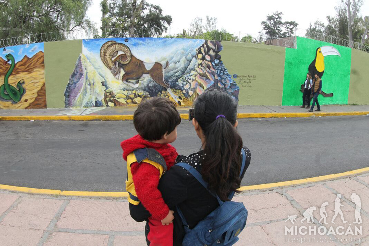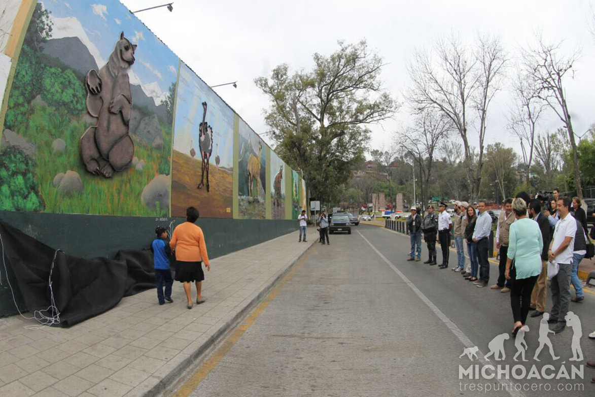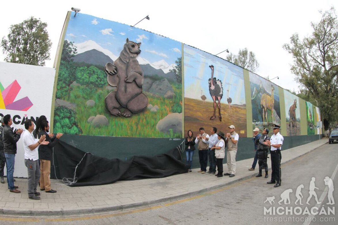 Morelia, Michoacán.-Tras dos semanas de trabajos, autoridades estatales, municipales y artistas  inauguraron la nueva imagen de la barda perimetral del parque zoológico “Benito Juárez”, en la ciudad de Morelia.