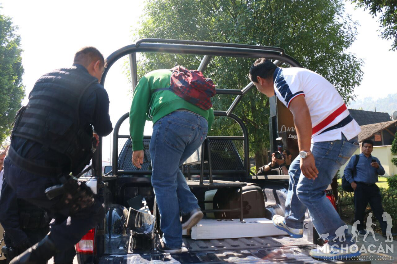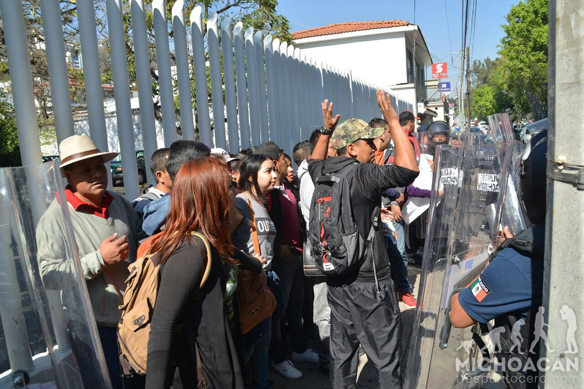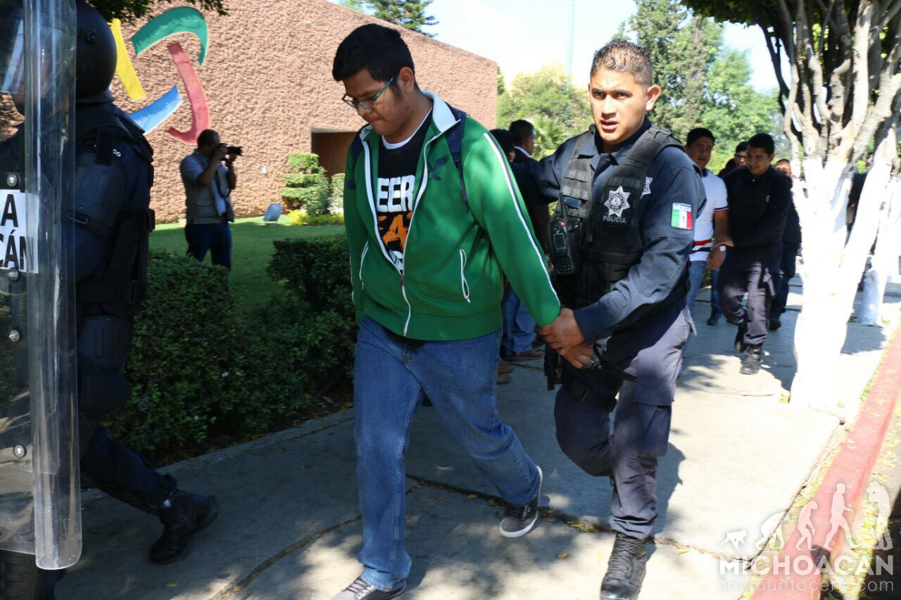 Elementos del Grupo de Operaciones Especiales (GOE) arribaron al sitio para replegar a los manifestantes, lo que derivó en un enfrentamiento que se extendió hasta la Avenida Camelinas frente a la plaza del mismo nombre, por lo que se procedió a detener a los docentes.