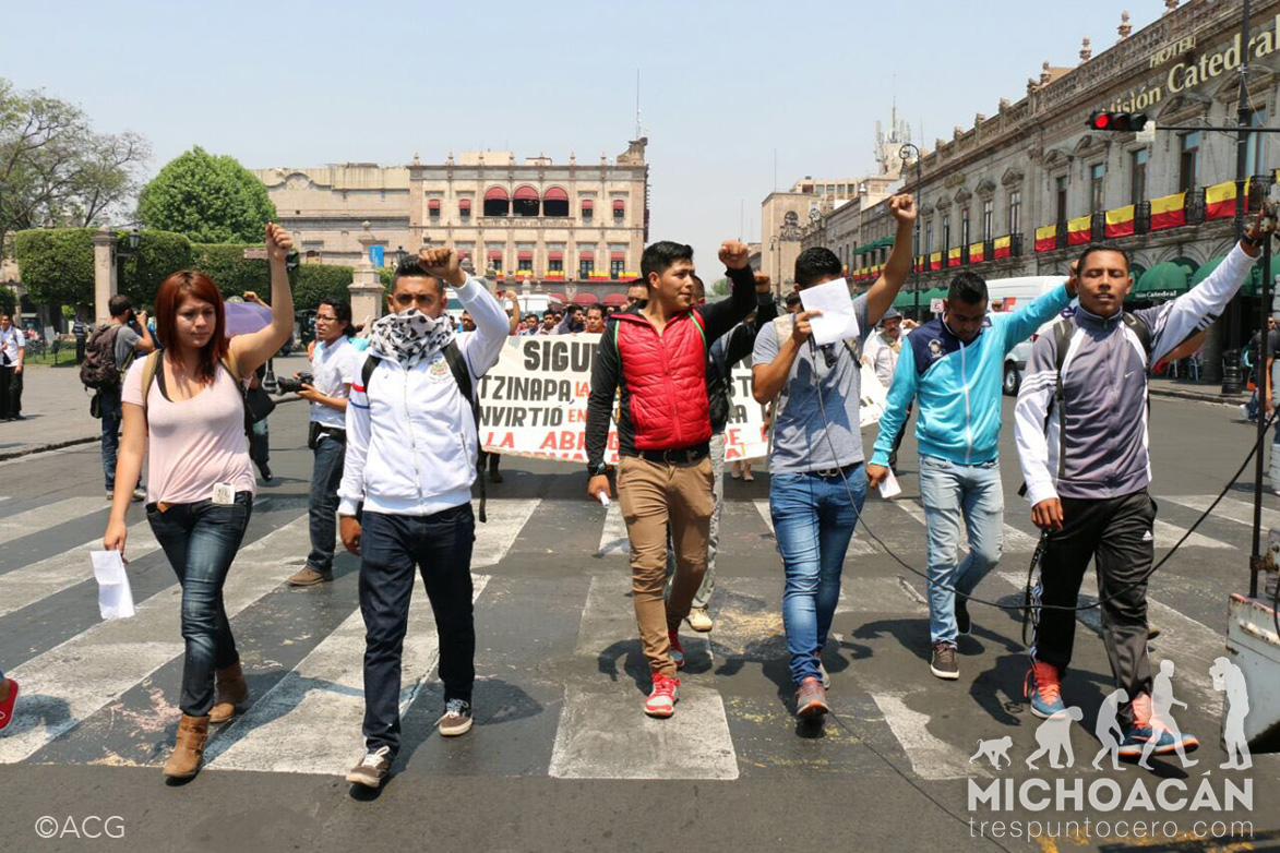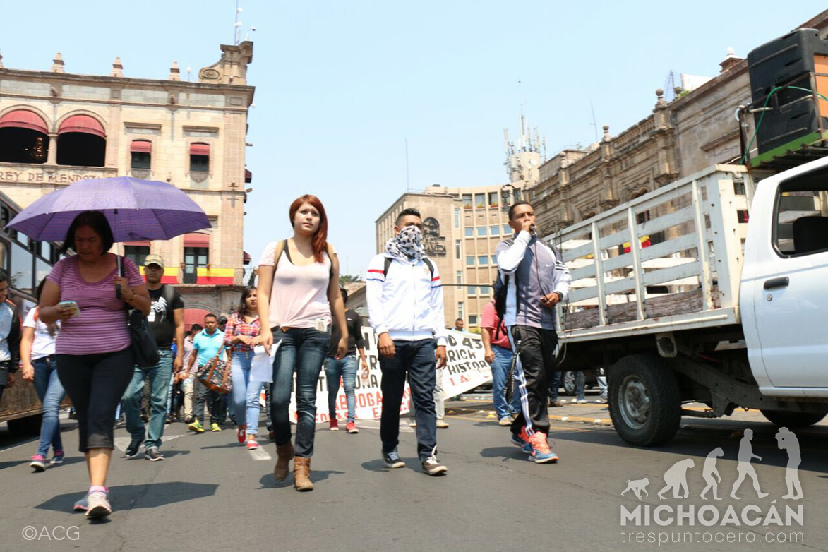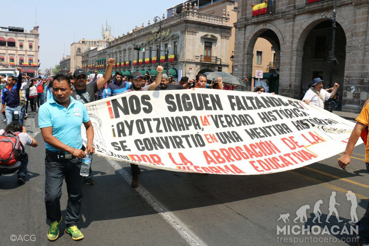 En su marcha los jóvenes también se pronunciaron para exigir justicia por la desaparición de los 43 estudiantes de la Normal Rural de Ayotzinapa de quienes aún se desconoce su paradero.