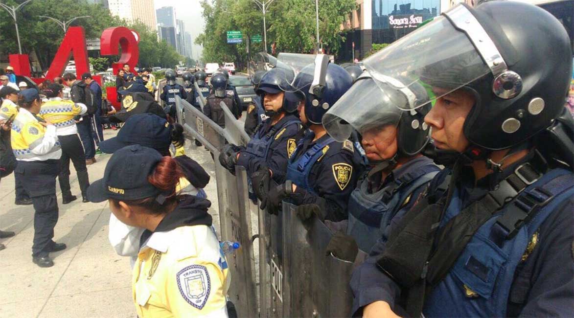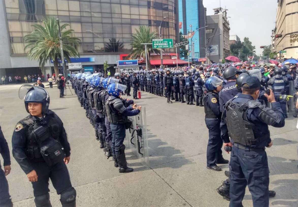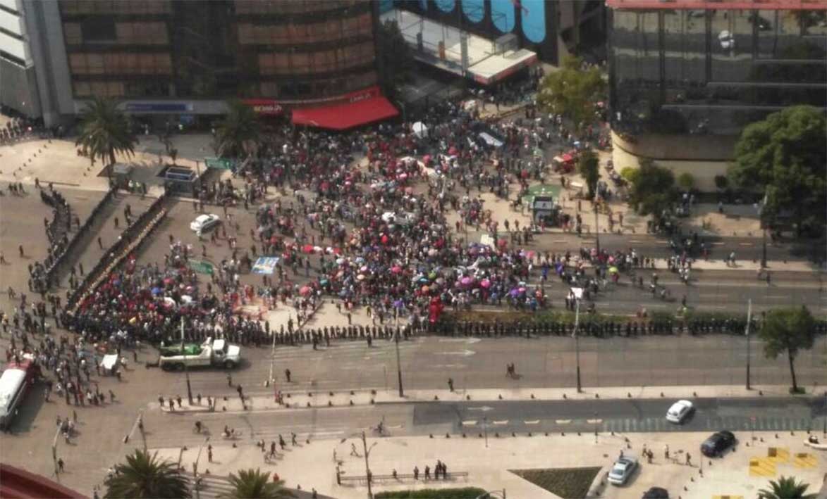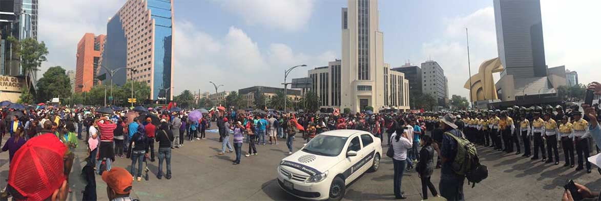Los docentes de Chiapas, Oaxaca, Guerrero, Puebla, Estado de México y Michoacán fueron frenados a la altura de la Torre del Caballito en la Avenida Paseo de la Reforma y por la Calzada Ignacio Zaragoza, cuando se dirigían a los lugares ya mencionados.