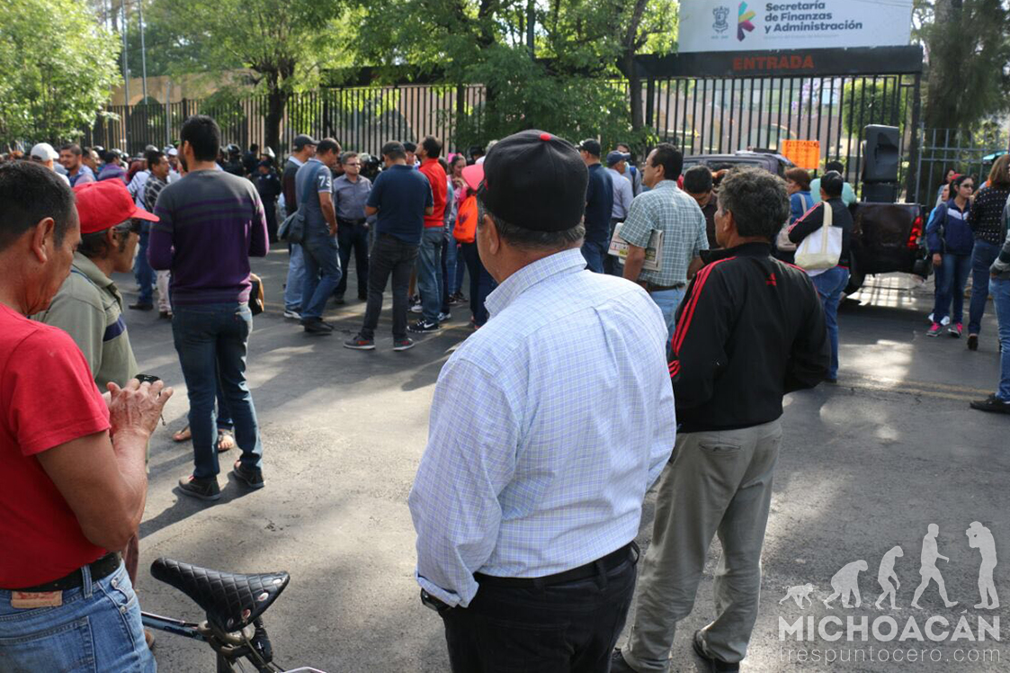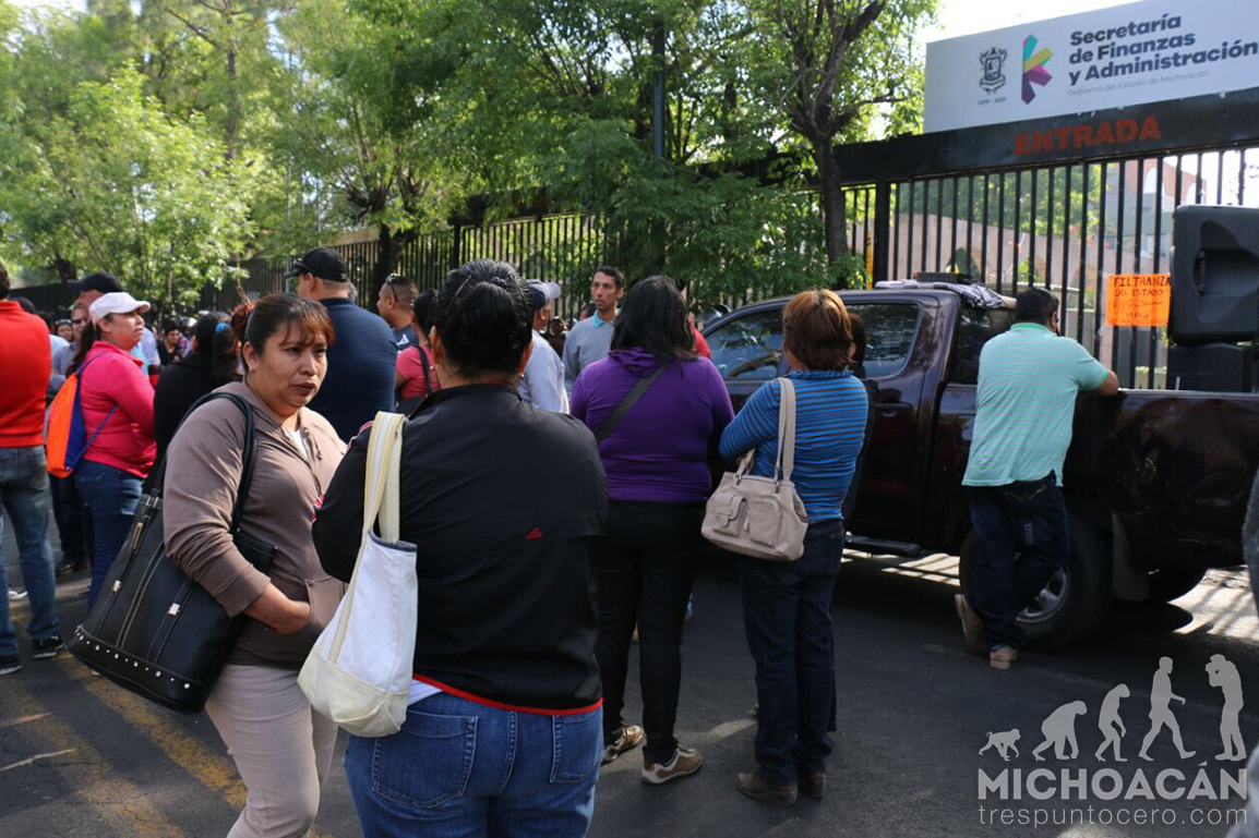 Morelia, Michoacán.-Profesores de la Coordinadora Nacional de Trabajadores de la Educación (CNTE) mantienen bloqueada las instalaciones de la Secretaría de Finanzas y Administración en protesta a la demanda a la falta de pagos de varias prestaciones.