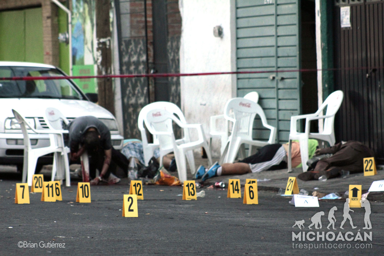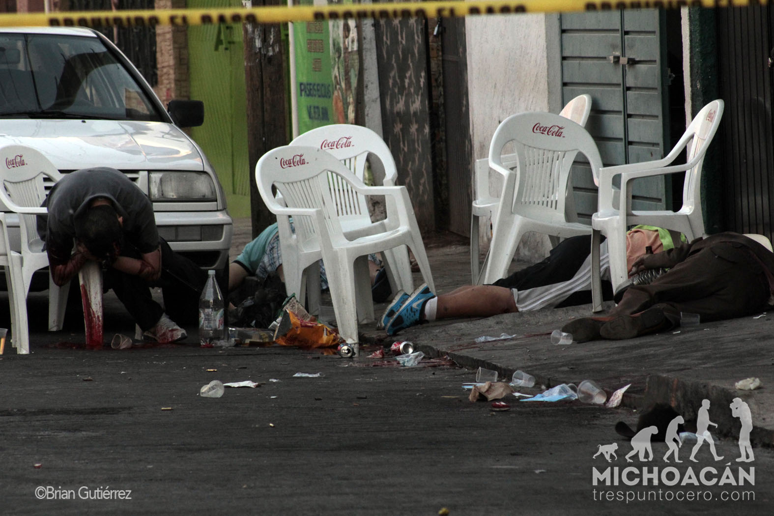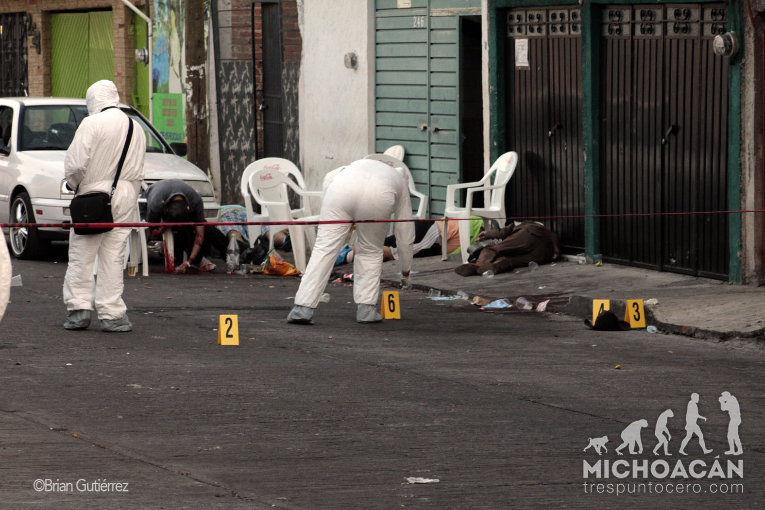 Morelia, Michoacán.-Cuatro muertos y cinco heridos es el saldo de un atentado en contra de un grupo de personas que ingerían bebidas embriagantes en la colonia Jardines del Rincón, en la ciudad de Morelia.